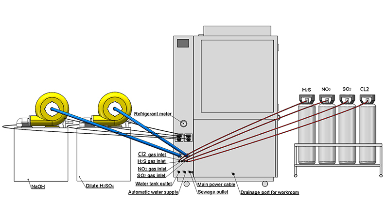 High-sensitivity sensors—electrochemical for H2S and UV-fluorescence for SO2—monitor gas concentrations, temperature, and humidity. Deviations trigger automatic MFC adjustments, maintaining ppb-level stability throughout long-term tests. LIB industry’s closed-loop system ensures reproducibility even for 14–21 day accelerated tests simulating multiple years of natural corrosion.