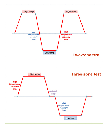 Three-zone thermal shock chambers provide controlled, gradual transitions, ideal for sensitive or large assemblies where sample stability is critical.