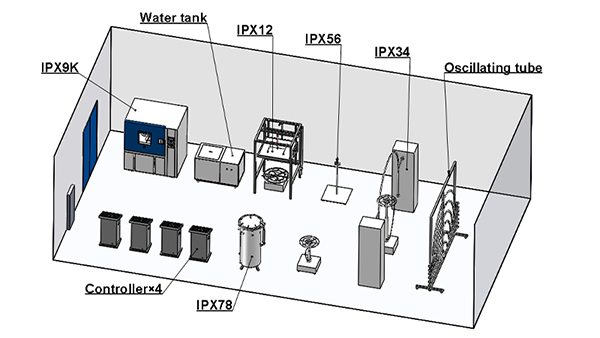 Lifetime Assistance: 3-year warranty and lifetime technical support, with comprehensive IPX testing solutions including IPX1–IPX6, IPX7,IPX8 and IPX9K, plus dust test chambers.