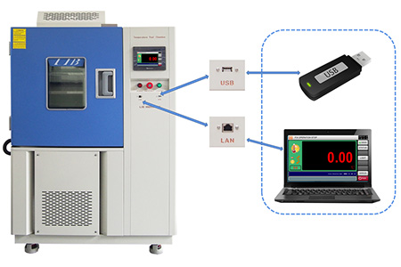 Test Port | Multiple test ports (Φ50mm or Φ100mm) for power cables, signal lines, or external sensors. Each port is sealed with silicone plugs to prevent leakage and maintain chamber integrity. Customizable port size and position to meet different testing setups.