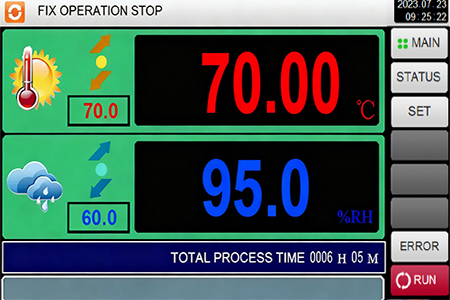 Advanced Programmable Control Platform | The touchscreen controller supports multi-segment test profiles, constant-condition hydrolysis aging, and cyclic temperature-humidity programs.