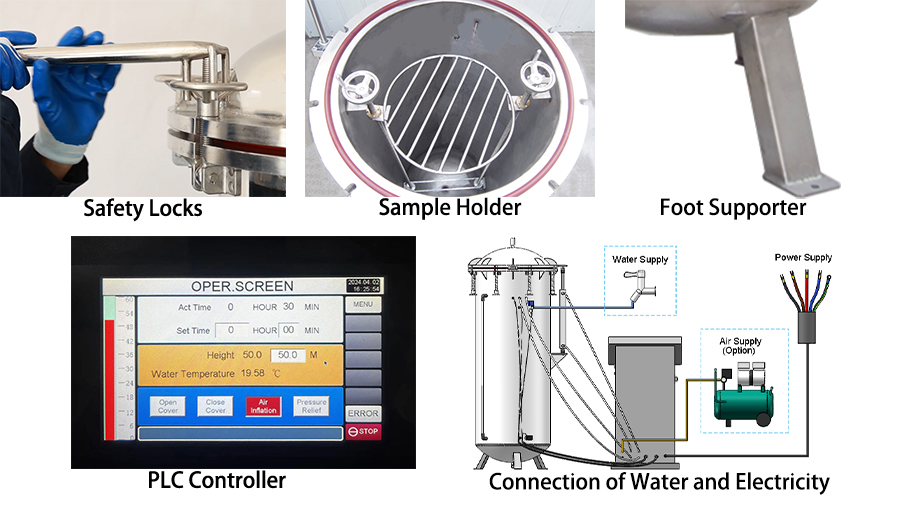 The IPX7 water immersion test equipment simulates immersion depths equivalent to 1–50 m water pressure, with a maximum pressure of 50 bar, fully meeting IPX7 requirements and supporting extended immersion validation.