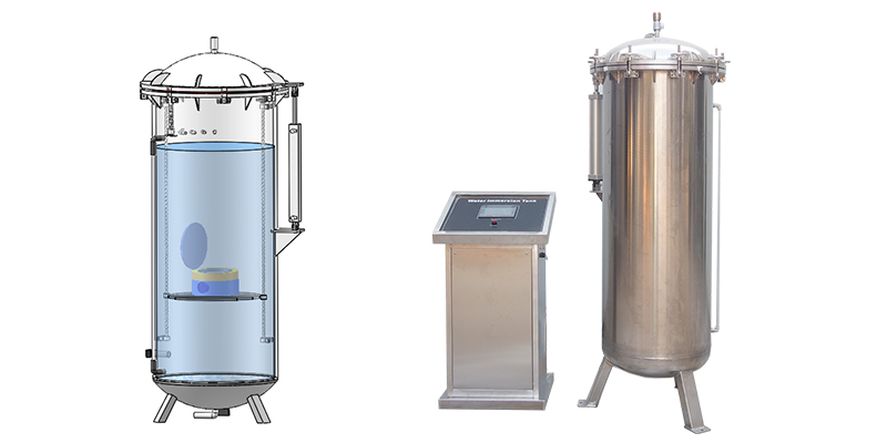 The cylindrical immersion tank design ensures even water pressure distribution on all surfaces of the DUT. An adjustable internal sample holder supports loads of up to 50 kg, accommodating a wide range of product sizes and weights.