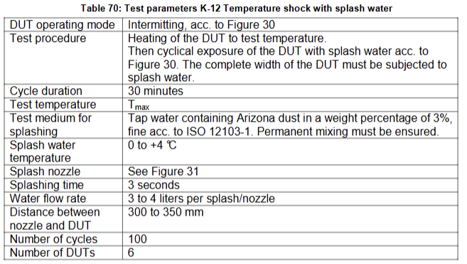 Standards & Compliance:LV124 K-12 ,ISO 16750 (Environmental conditions for electrical/electronic equipment),OEM-specific automotive lab requirements