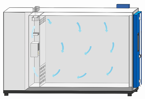 Uniform Air Circulation Design A forced air circulation system with optimized airflow paths ensures uniform distribution throughout the workspace. Temperature uniformity across the test area can be controlled within ±2.0℃, even when testing large or densely loaded samples. |  |