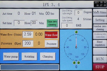 4. Sample Fixing and Turntable SystemStable positioning with powered waterproof testing Secure sample fixing prevents movement during testing Adjustable turntable height: 350–500 mm Turntable rotation speed for IPX3/IPX4: 1 RPM Equipped with a waterproof power supply device for energized testing 15° tilt dial for IPX2 testing, removable for IPX1 tests
