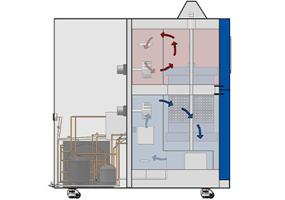 Compact, space-saving design: Single test chamber circulates hot and cold air via pneumatic dampers, maintaining performance without a large footprint.